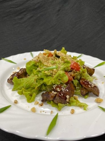 Теплый салат с куриной печенью