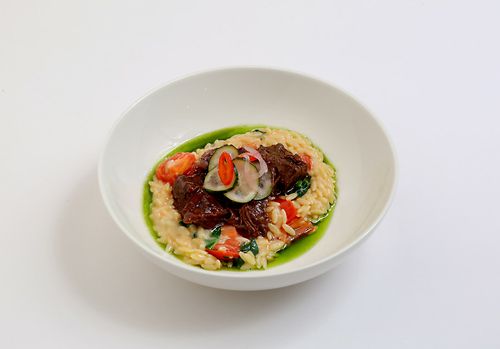Орзо с говяжьими щечками
